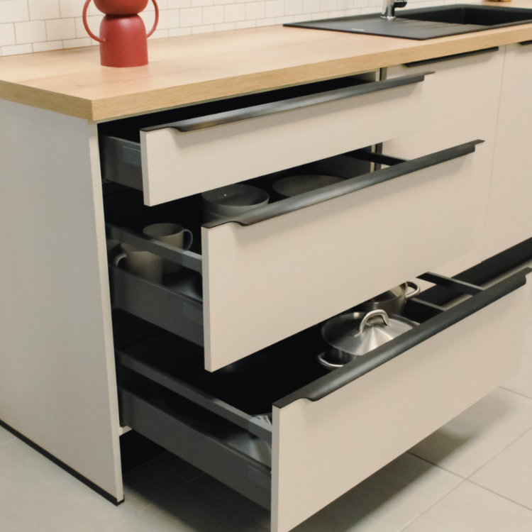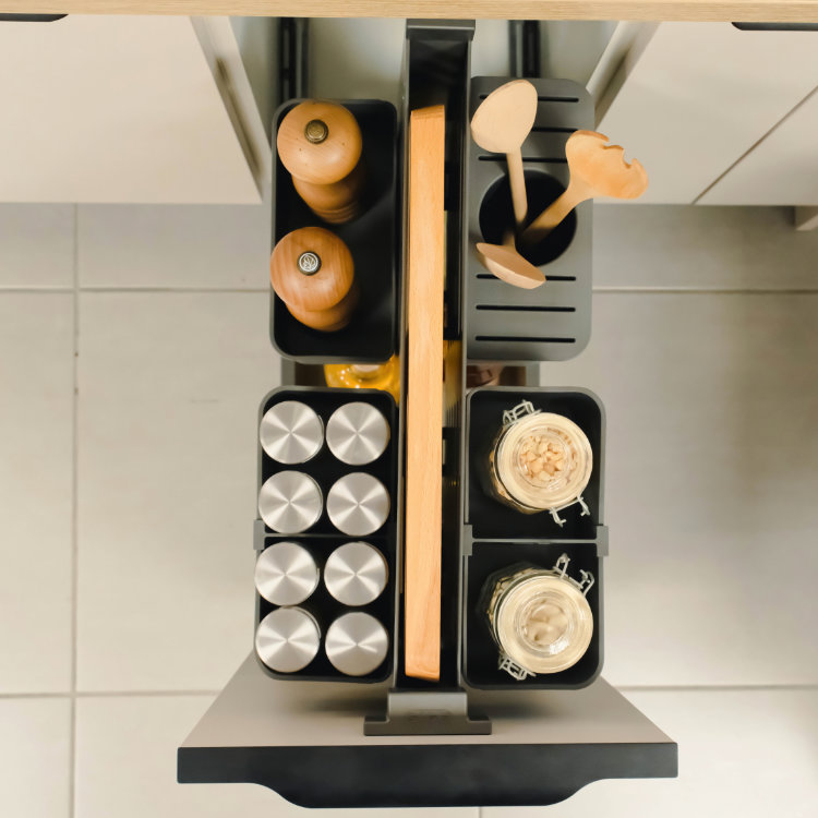 Agencez votre cuisine de la manière la plus fonctionelle possible pour votre déplacement dans celle-ci. Ajoutez un tiroir à porté de main avec vos ustenciles du quotidien.