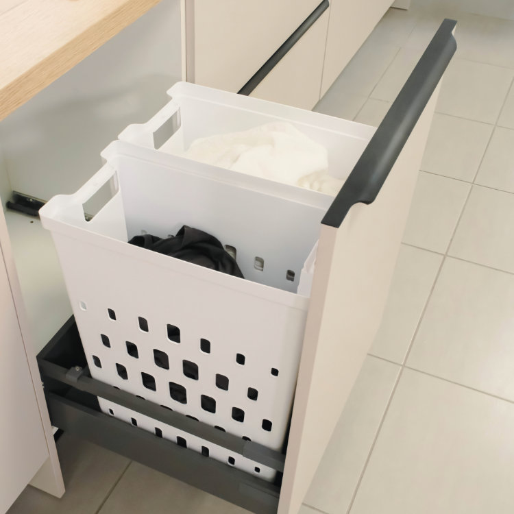 Pour un espace buanderie ordoné, optez pour le meuble paniers à linge pour simplifier votre routine.