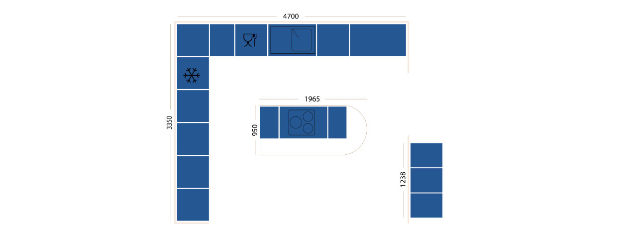 L’implantation en L vous permet de concevoir un espace de vie avec un îlot pour accueillir la famille et les amis et partager un moment convivial. Grâce à cette implantation vous disposez d’un espace de 21 m2.