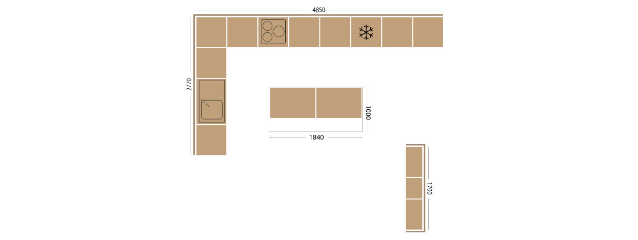 L’implantation en U avec îlot vous permet d’optimiser chaque côté de votre cuisine. Cette conception est idéale pour partager et recevoir. Grâce à cette implantation vous disposez d’un espace de 11,5 m2.