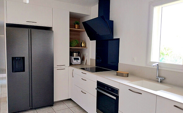 Nous imaginons et installons des cuisines personnalisées, alliant fonctionnalité et esthétisme, pour créer un espace qui vous ressemble. Grâce à la modélisation 3D, nous vous aidons à vous projeter concrètement dans votre futur intérieur.
